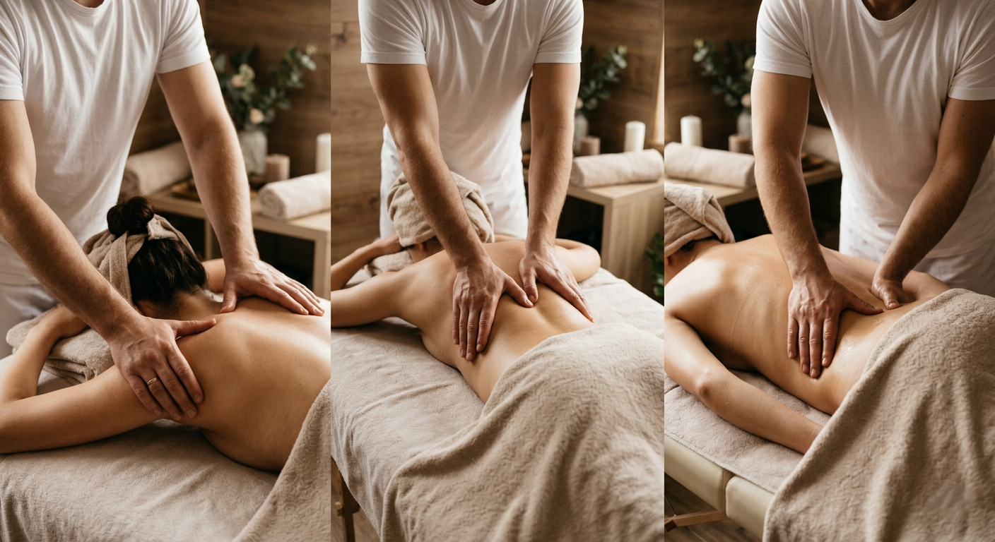 Masáž zezadu: Hloubková regenerace Soustředí se na velké svalové skupiny, které jsou nejvíce namáhány sportem či stáním. Pomáhá harmonizovat celé tělo, zlepšuje krevní oběh a navozuje hluboký vnitřní klid. Je to ideální způsob, jak "vyhnat" únavu z těla po náročném dni.